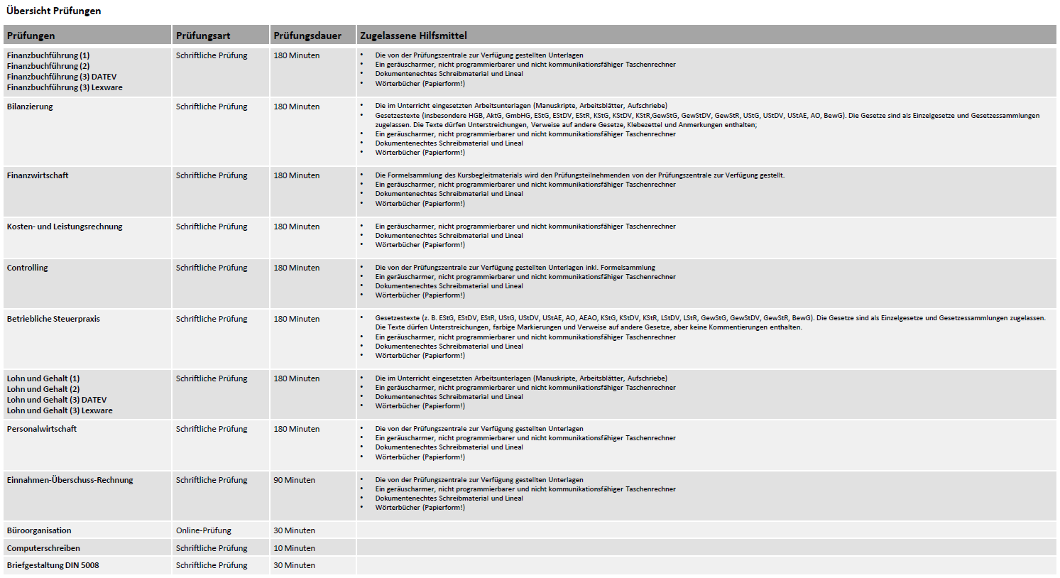 Übersicht Prüfungen